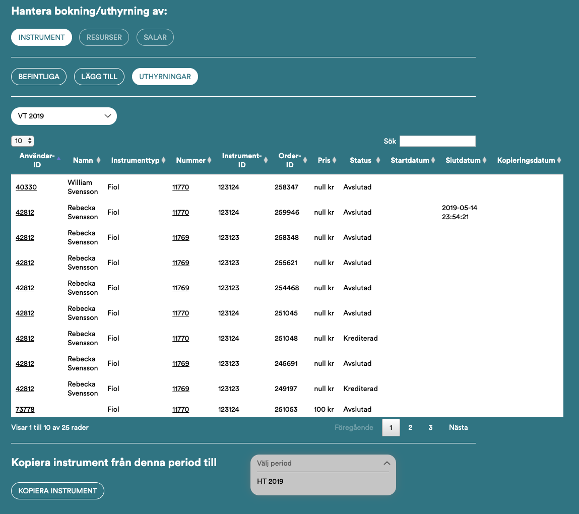 Se till att alla betalningar för instrumenthyror i befintlig termin är genomförda. När ni kopierar över instrumenthyrorna avslutas de i den pågående terminen och blir aktiva i kommande termin.