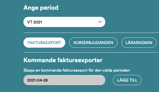 - Sätt ett exportdatum under "Kommande fakturaexporter" och avsluta med att klicka på "Lägg till".